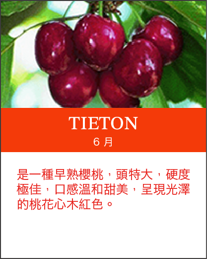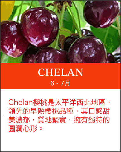 南美洲櫻桃產期:紐西蘭和澳洲以及智利,12月至隔年1月。