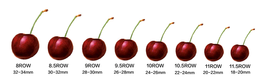 如何區分櫻桃的果實大小,一般都是依出產國的標準而定,大致上分為ROW和MM兩種單位,以ROW來作為標準的計算方式有美國和加拿大,其他國家都是以公制單位MM為準,有紐西蘭和澳洲還有智利。